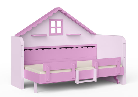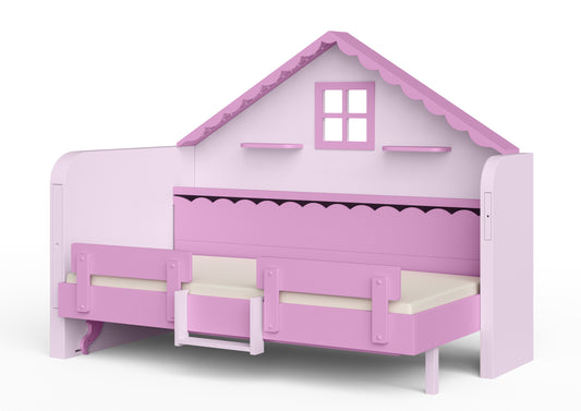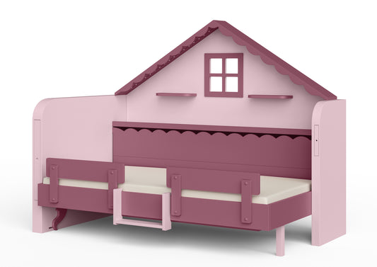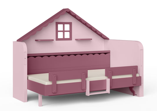 Pakeliama vaikiška lova namelis su žaidimų erdve HAUSY Pink Dream