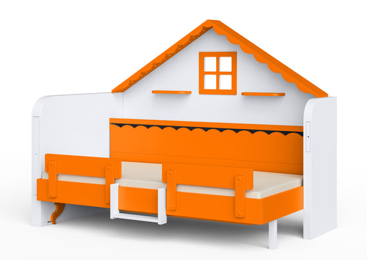 Pakeliama vaikiška lova namelis su žaidimų erdve HAUSY Orange Sky